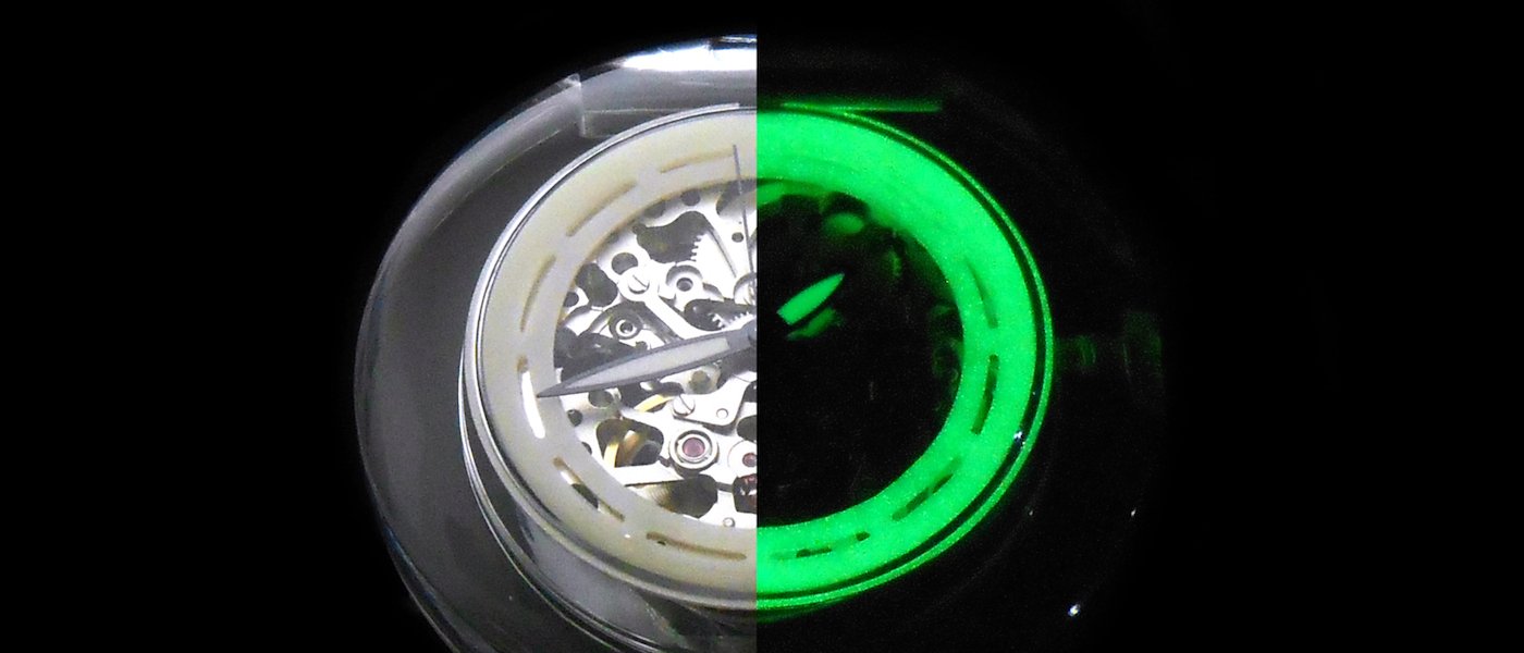 The new polymer, about which we know very little, has a light transmission factor higher than that of glass. That means that when the glow in the dark feature is activated, the watch definitely radiates and looks like some gadget from a science fiction movie.