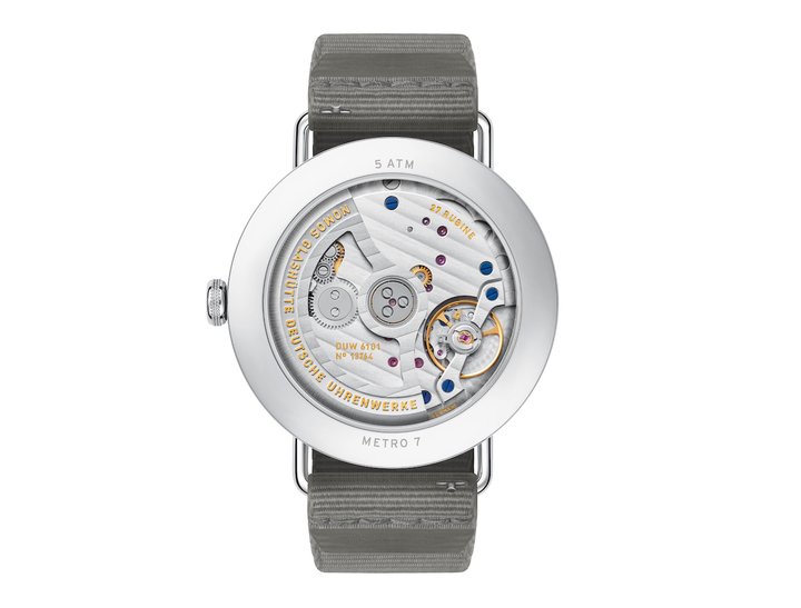 In 2018, Tangente made its debut featuring the same technology. Metro is a more youthful model, cosmopolitan and modern: The first version of the watch was introduced in 2014 with manual winding. In 2016, the first version to be equipped with the ultra-slender neomatik calibre (DUW 3001) was released. Metro has always had an elegant bezel, similar to Tangente.