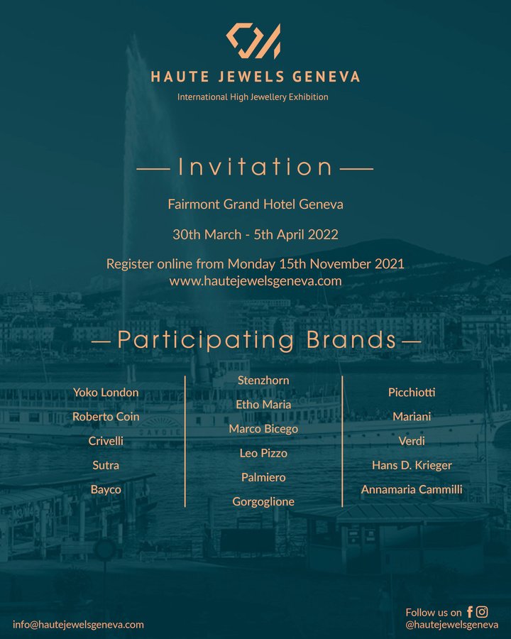 ixteen of the world’s finest jewellery brands will exhibit at the Fairmont Grand Hotel Geneva from 30th March to 5th April 2022, as Haute Jewels Geneva returns bigger and better, promising to be a glorious celebration of fine jewels.