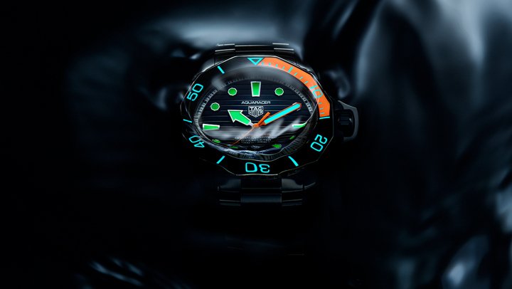 - It is no coincidence that the colour orange dominates the TAG Heuer Aquaracer Superdiver 1000. It is the very colour of maritime safety, sitting opposite the blue of the ocean on the colour wheel, meaning it can be quickly spotted at sea. In addition to the ultra-visibility of this high-performing timepiece, the TAG Heuer teams have also worked on improving the ergonomics, notably by incorporating deeper recesses in the bezel to allow for better grip and to facilitate turning.