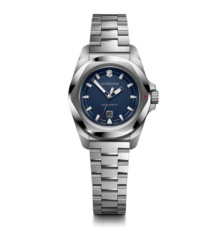 - Despite its smaller size (32 mm), the I.N.O.X. Small includes all the features of its larger counterparts: date display, antimagnetic protection, shock resistance, and water resistance – all backed by Victorinox’s quality promise.