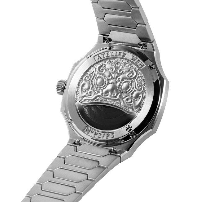 This timepiece arrives in the familiar form of the brand’s integrated bracelet steel sports watch, Perception. With a case and bracelet crafted out of 904L stainless steel, and a customised extra-thin Peacock SL1588A calibre, it is designed to stand up effortlessly to the demands of daily wear.