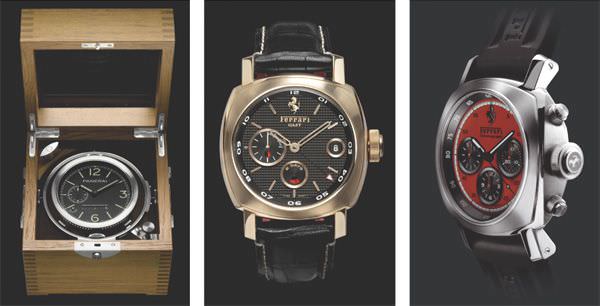 Designed entirely by Panerai, inspired by Ferrari Design, the Ferrari watches are an attempt to distil the unique DNA from both iconic Italian brands and the result is an interesting blend of both companies. Even the casual watch person can recognize that the new collection is from Panerai and the watches have design cues taken from Ferrari cars, including case shape, which is evocative of the car body, the prancing horse and the instantly recognizable Ferrari logo.