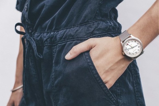 Each Farer watch features a modest 39.5mm case with a durable, brushed stainless steel and rim. The vintage inspired domed sapphire crystal glass gives their watches a retro feel reminiscent of military-dial models of the 1940s and 1950s, featuring a 10mm depth and a curved sunray dial in various finishes. The rhodium plated hands add to that effect, and come in an array of bright colours, accenting each watch with a unique combination of hues.