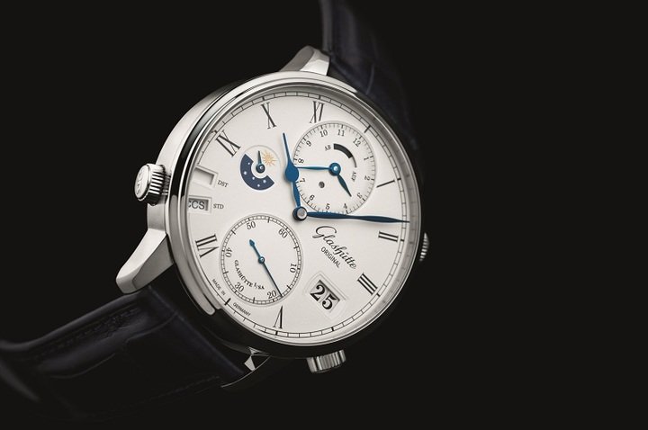 The differently coloured indications are intuitive and allow the wearer to identify the offset from GMT at a quick glance. And because the primary point of reference for the traveler on the road is the local time at destination, the designers at Glashütte Original have made the dial easy to read by giving the prime positioning of the dial to the away or destination time.
