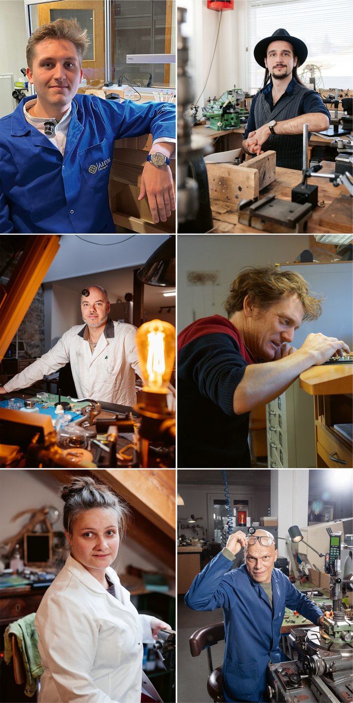 Some of the new “watchmakers at the window”. From left to right and top to bottom: Alexandre Hazemann, Julien Tixier, Olivier Mory, Luc Monnet, Shona Taine, Sylvain Pinaud.