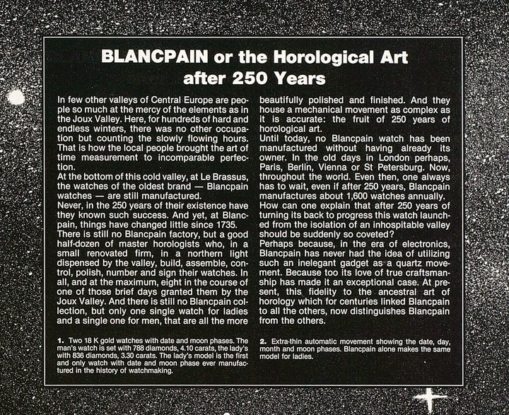 Blancpain's “manifesto” in a 1985 issue of Europa Star