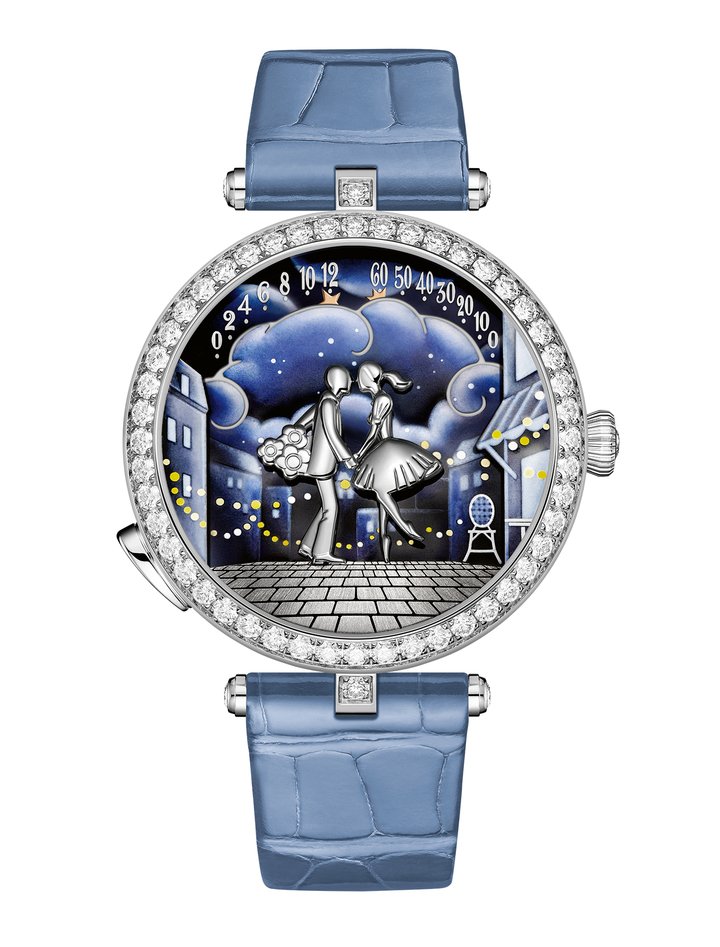 oetry, poetry and yet more poetry: with its new creations for 2025, Van Cleef & Arpels once again confirms and reinforces its territory – against a backdrop of Paris, with new variants for the Pont des Amoureux collection in dawn, morning, evening or moonlight hues thanks to the technique of coloured grisaille enamel, and the Bal des Amoureux Automate watch, an equally romantic automaton conveying the atmosphere and charm of a guinguette: at midday and midnight, the figures approach one another and exchange a kiss.
