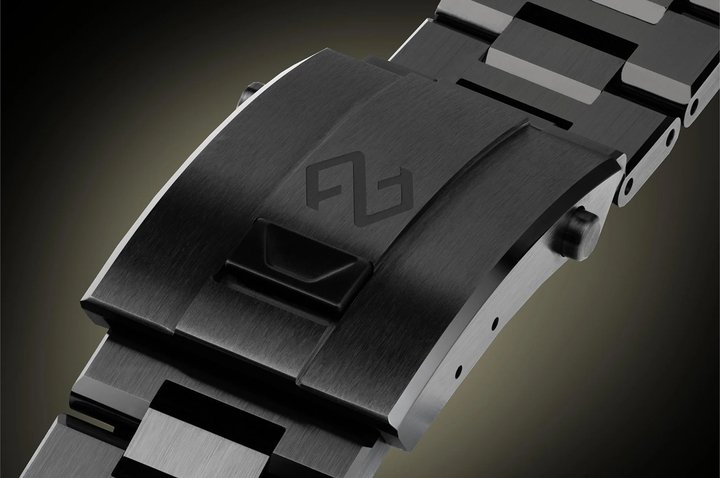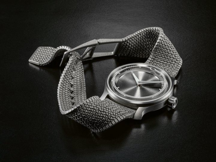 The Polymesh is a one-piece bracelet/strap in grade 5 titanium, comprising 1,693 components. Made using additive manufacturing and laser sintering, it incorporates a pin buckle and quick-release 20mm spring bars.