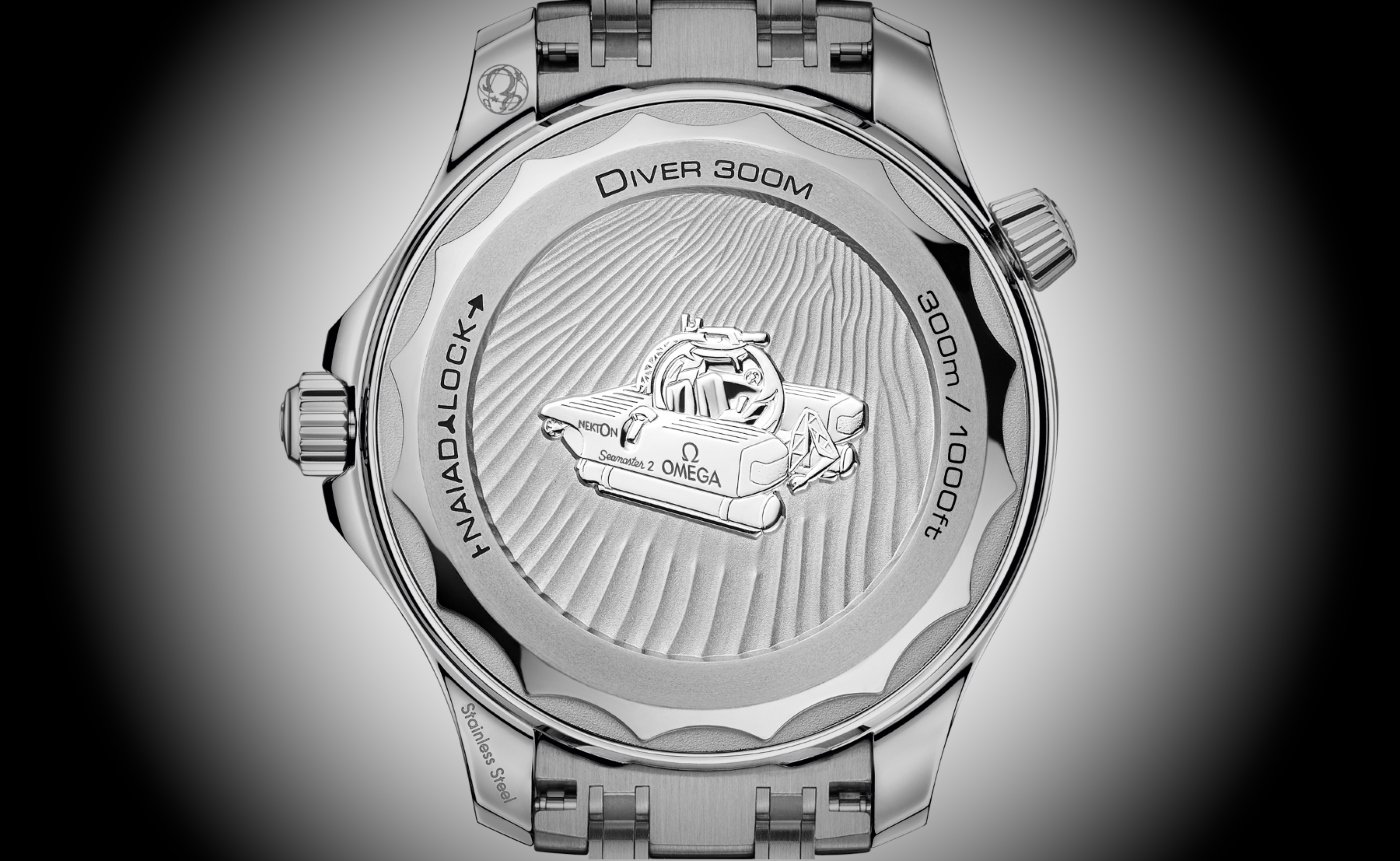 As a tribute to the hard-working foundation, the oriented caseback features an embossed Nekton submarine medallion and is engraved with NAIADLOCK, DIVER 300M and the watch’s water resistance.
