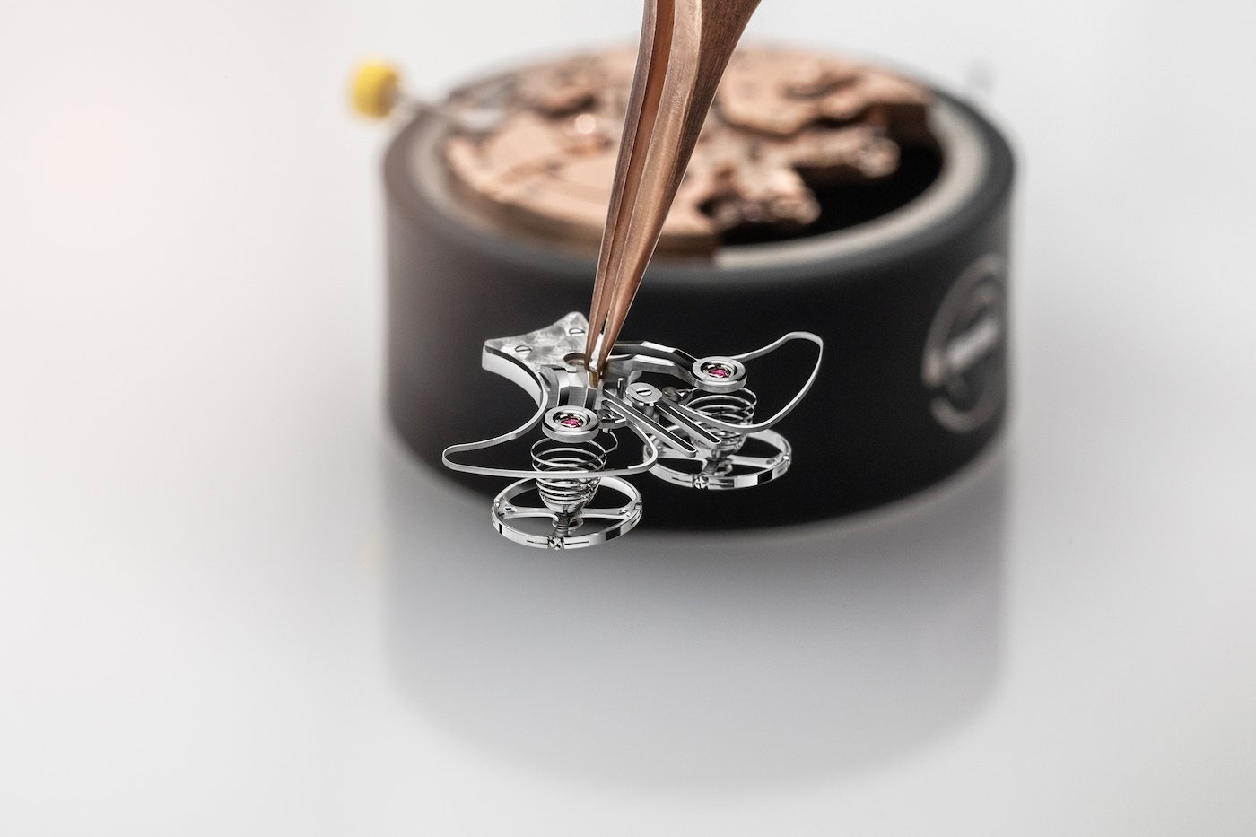 In horology, the Resonance Phenomenon — known in physics as Huygens Synchronization — occurs when two balance wheels influence each other via the exchange of subtle, almost imperceptible vibrations and enter into a state of synchronized oscillation. Physicists describe this phenomenon as “shared modes of motion.”